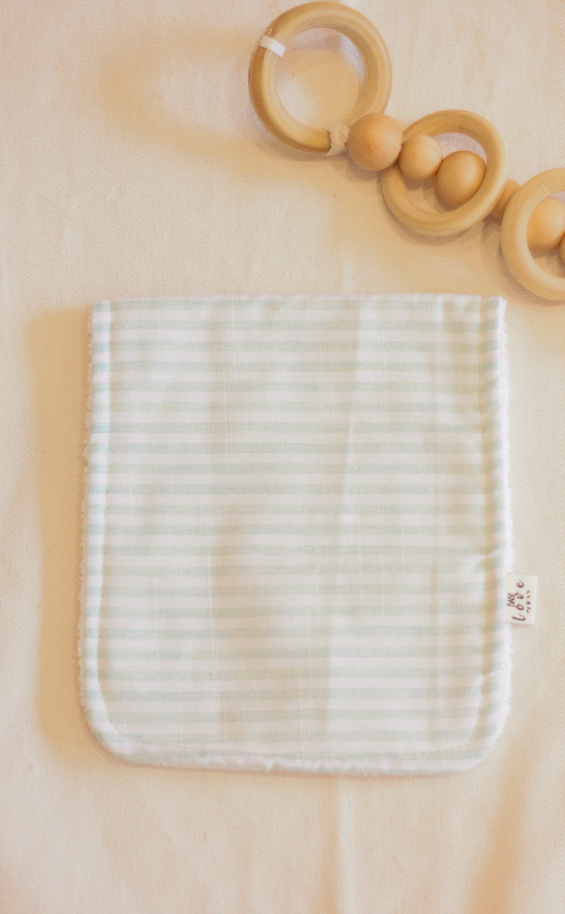 Babitas hechas a mano, con tela de toalla super absorbente de un lado y tela de algodón del otro.