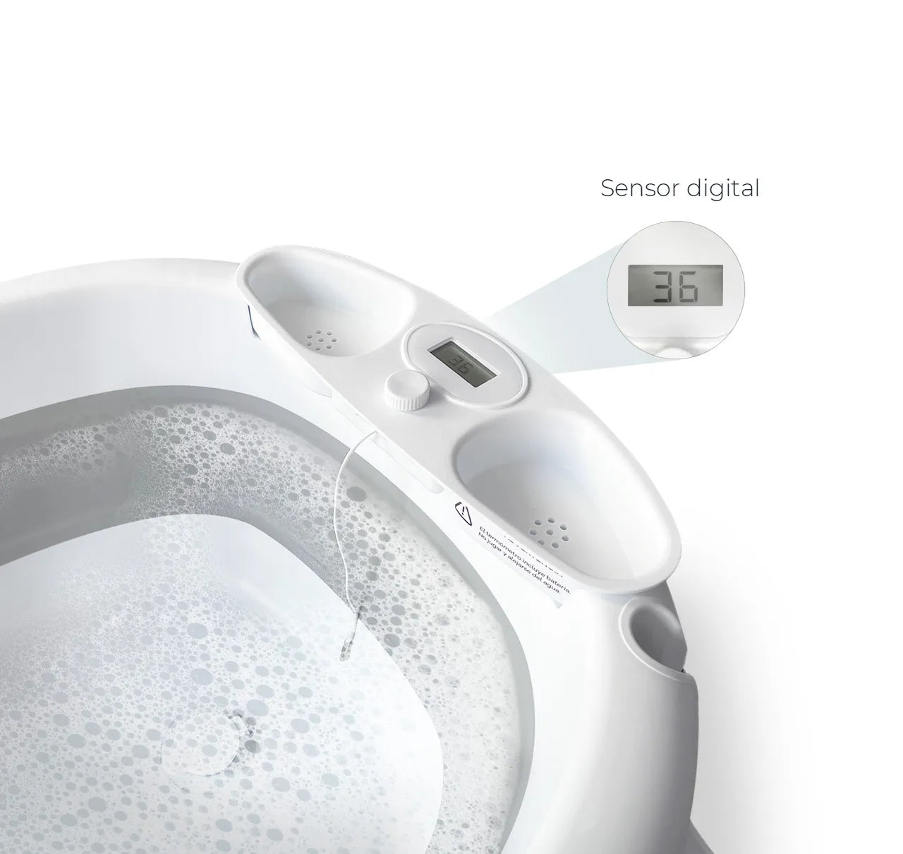 Aunque el sensor ofrece una lectura precisa, se recomienda siempre verificar manualmente la temperatura del agua antes de colocar al bebé. Tecnología y cuidado, en cada detalle.