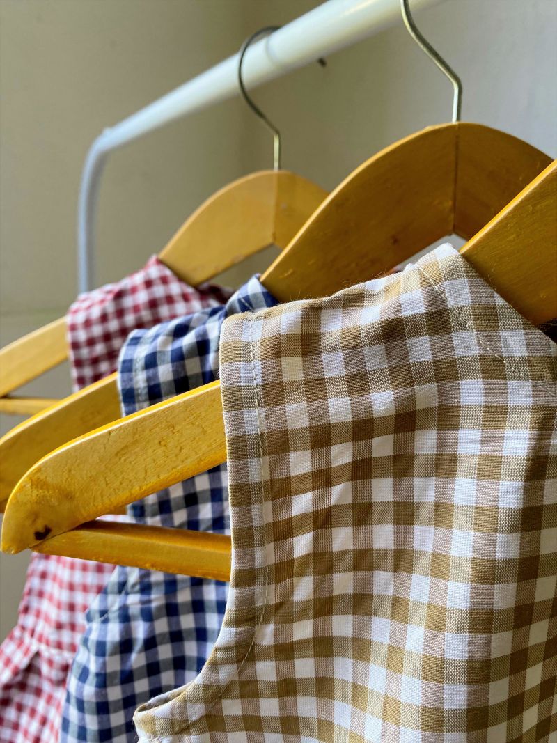 Blusa sin mangas, en polplín con acceso trasero mediante botones de coco.