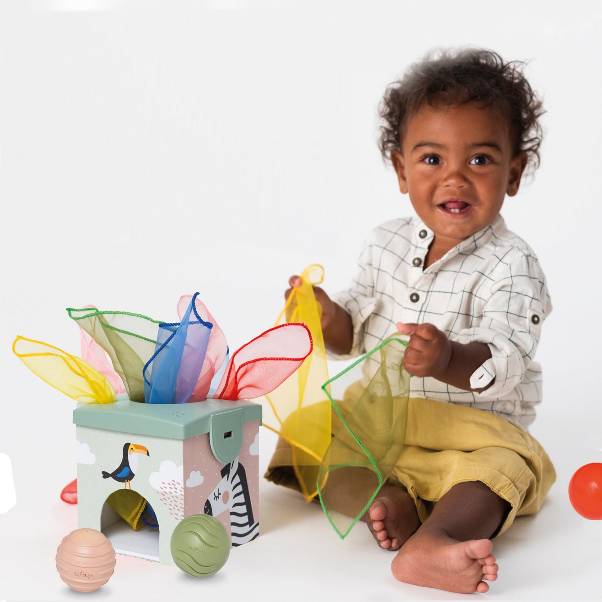 Taf Toys Magic Box está hecho de materiales de alta calidad, no tóxicos y seguros para bebés para que los niños jueguen sin riesgo de sufrir daños.