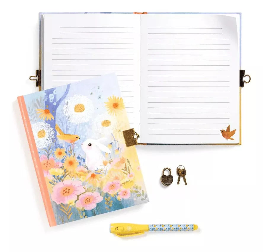 ¡Un diario íntimo y una lapicera de tinta invisible para que escribas y dibujes todos tus secretos! ¡Simplemente pasa la luz ultravioleta sobre él para revelar todos tus secretos! Este cuaderno contiene 88 páginas rayadas e ilustradas. Viene con un candado en forma de corazón y 2 llaves para mantener todas tus historias a salvo.