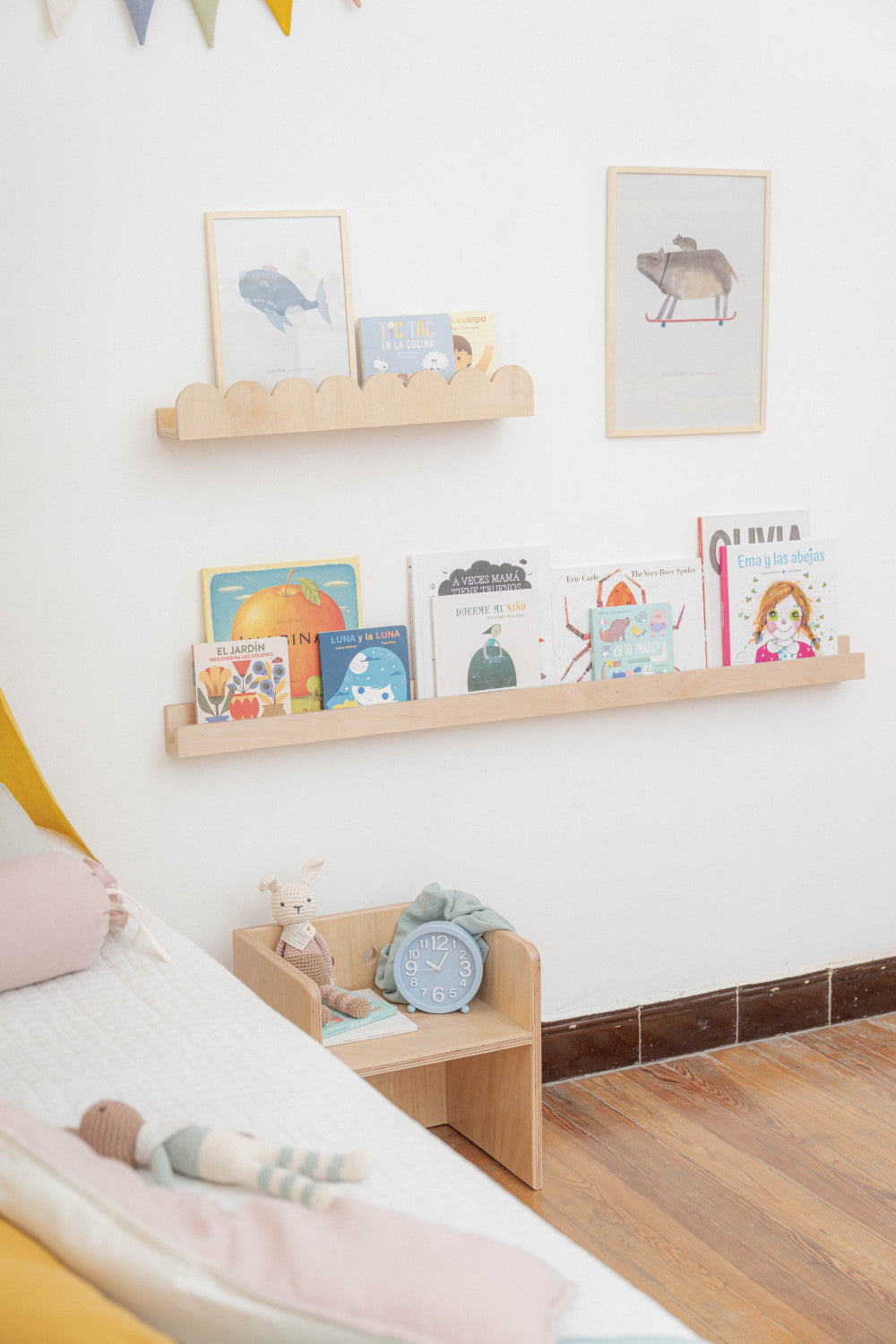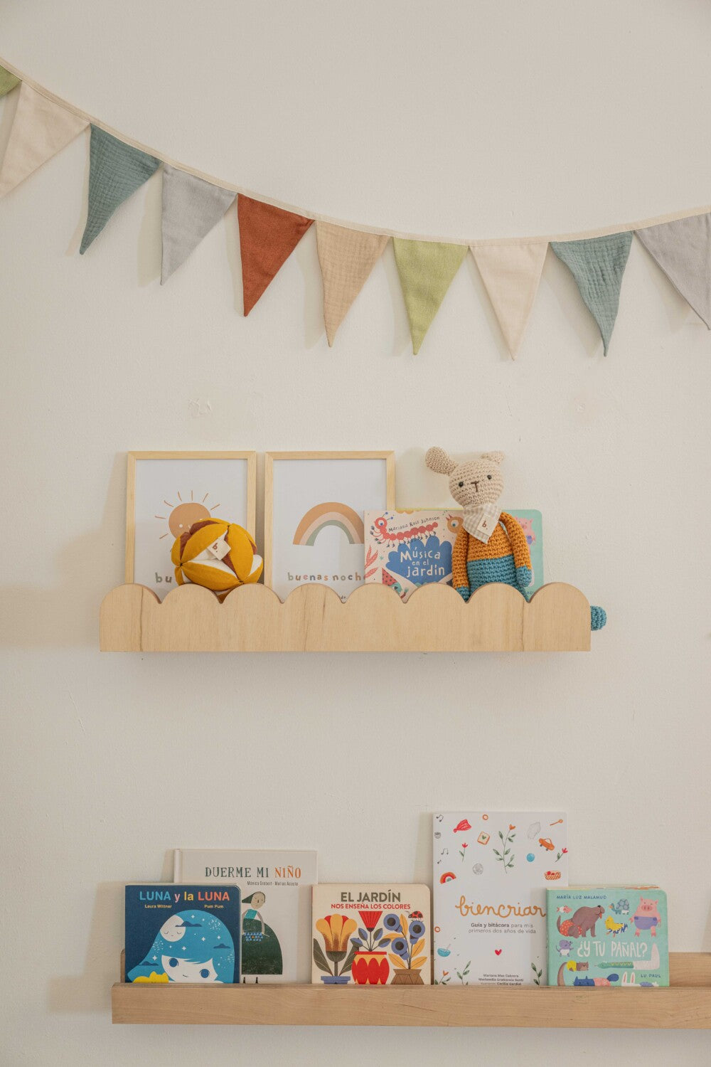 Estante para libros con diseño de ondas.