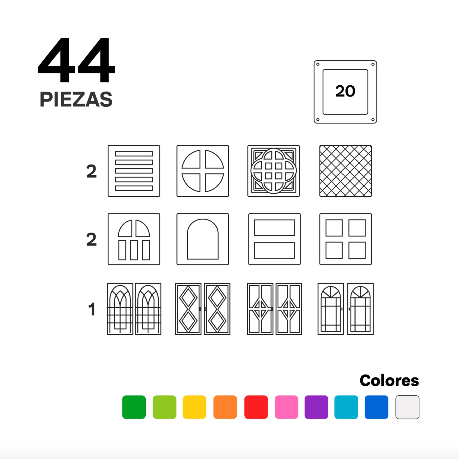 Componentes: Incluye una variedad de ventanas de colores y vitrales que puedes agregar a tus construcciones en 2D y 3D para capturar y difractar la luz de manera entretenida.