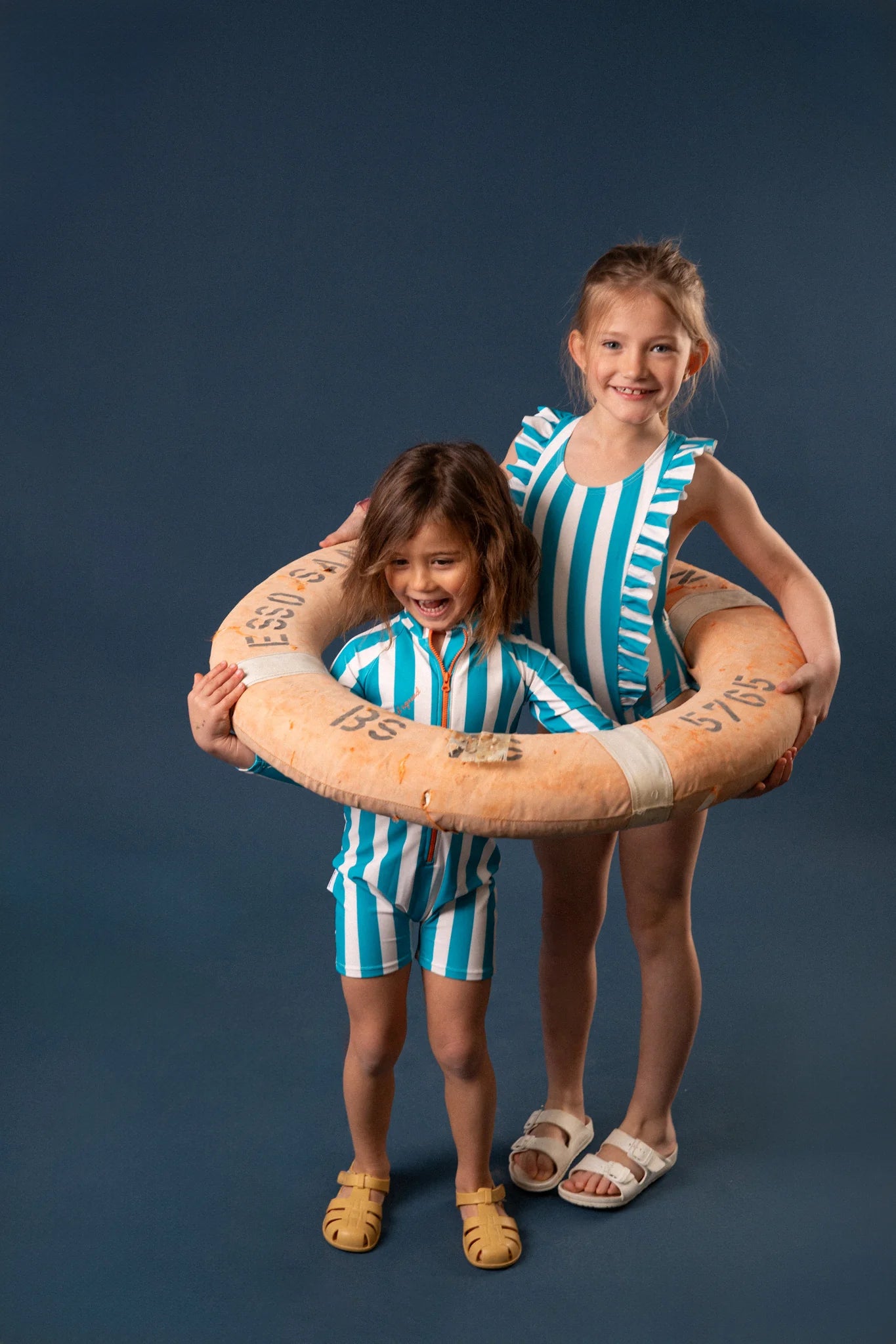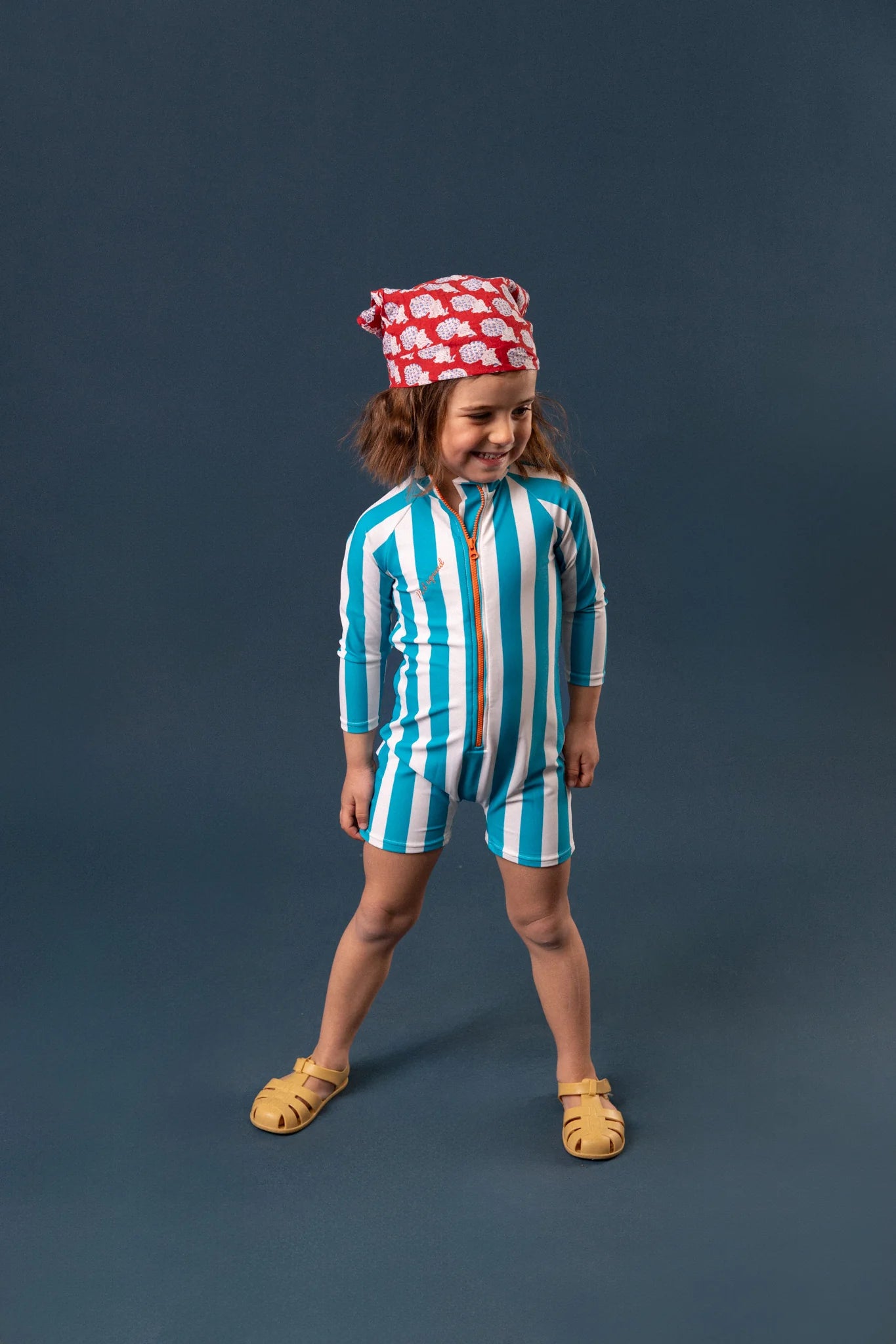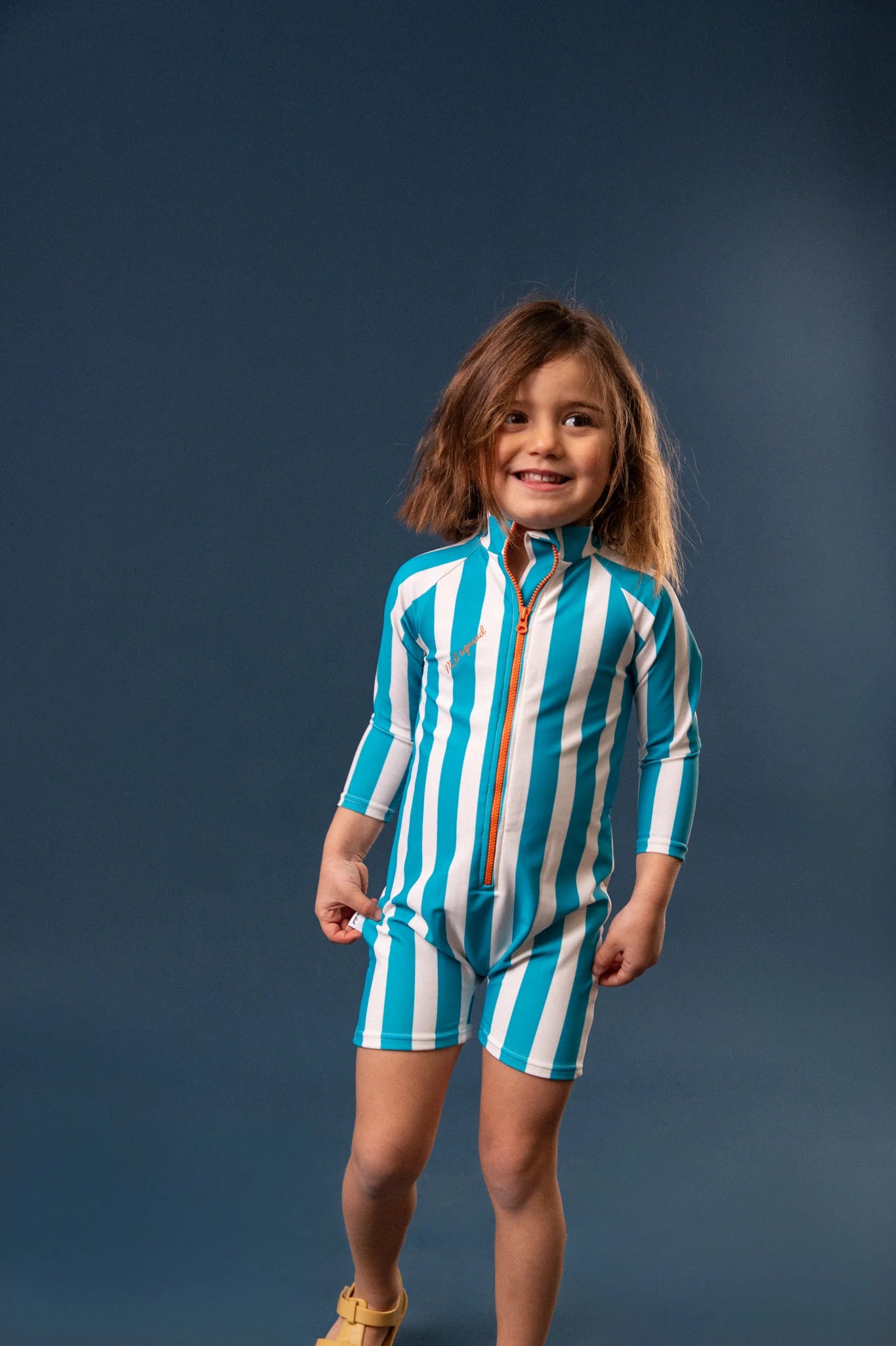 Traje de baño unisex entero con manga larga y short, confeccionado con protección solar UPF+50 y completamente forrado por dentro para mayor comodidad.