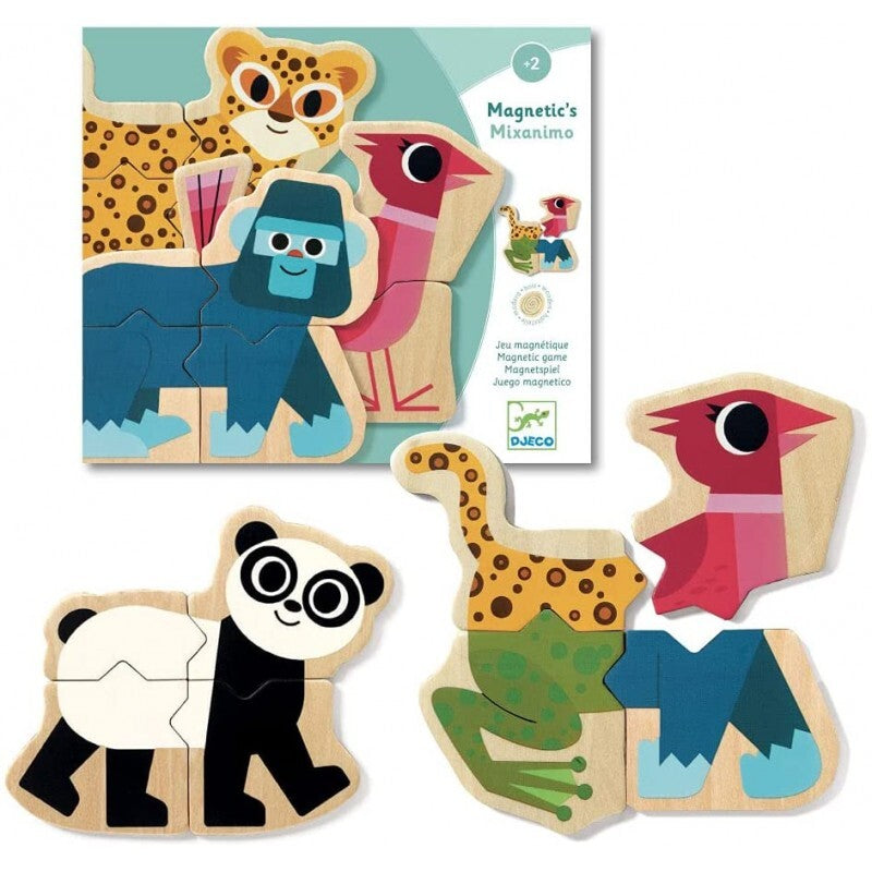 Son 24 piezas magnéticas de madera para ir formando distintos animales.