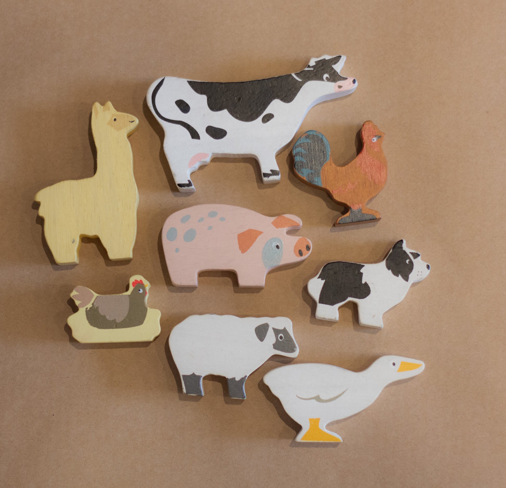 Pack de 8 amigos de la granja, realizados en madera y pintados a mano.