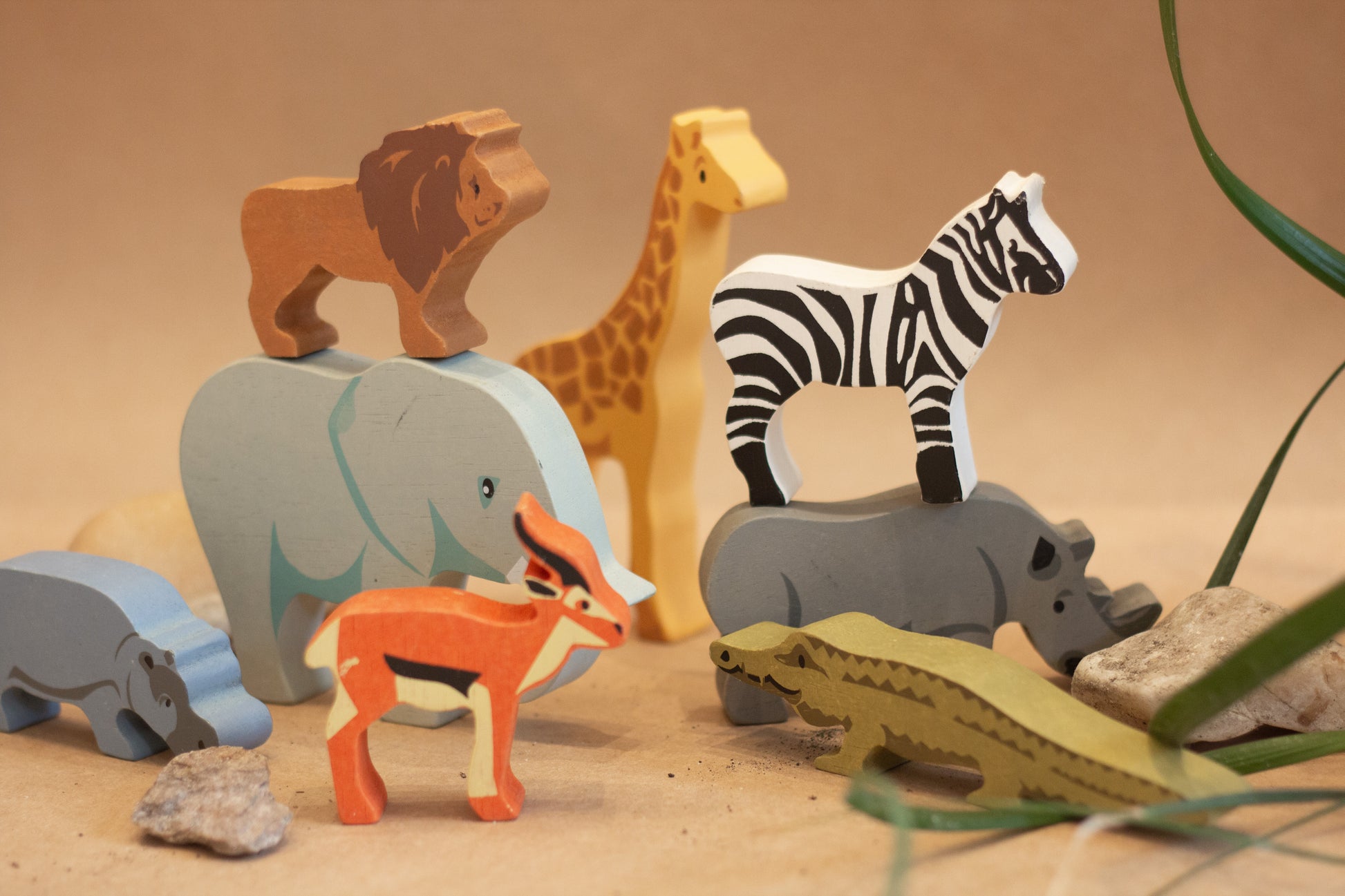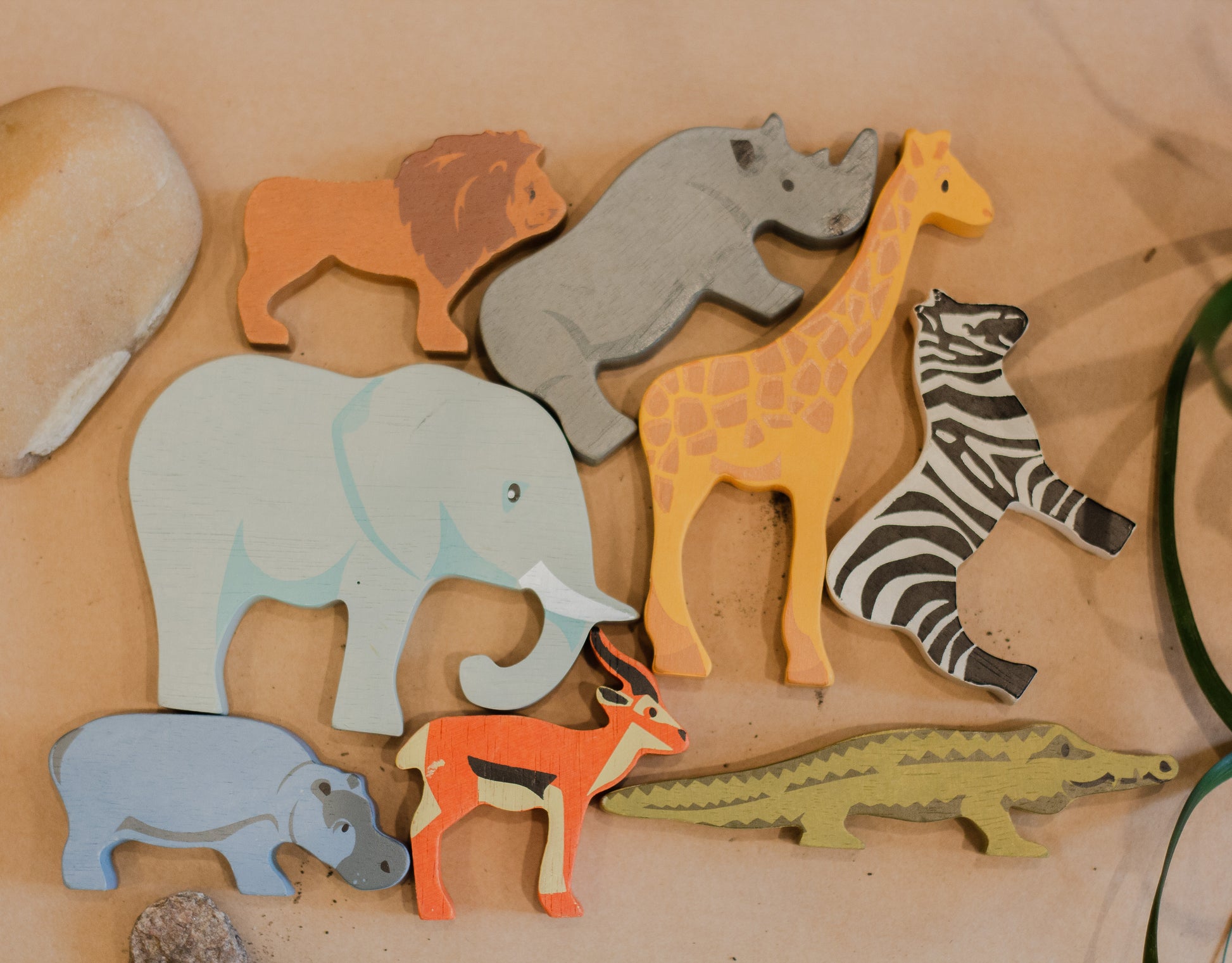 Pack de amigos de la sabana, realizados en madera y pintados a mano.