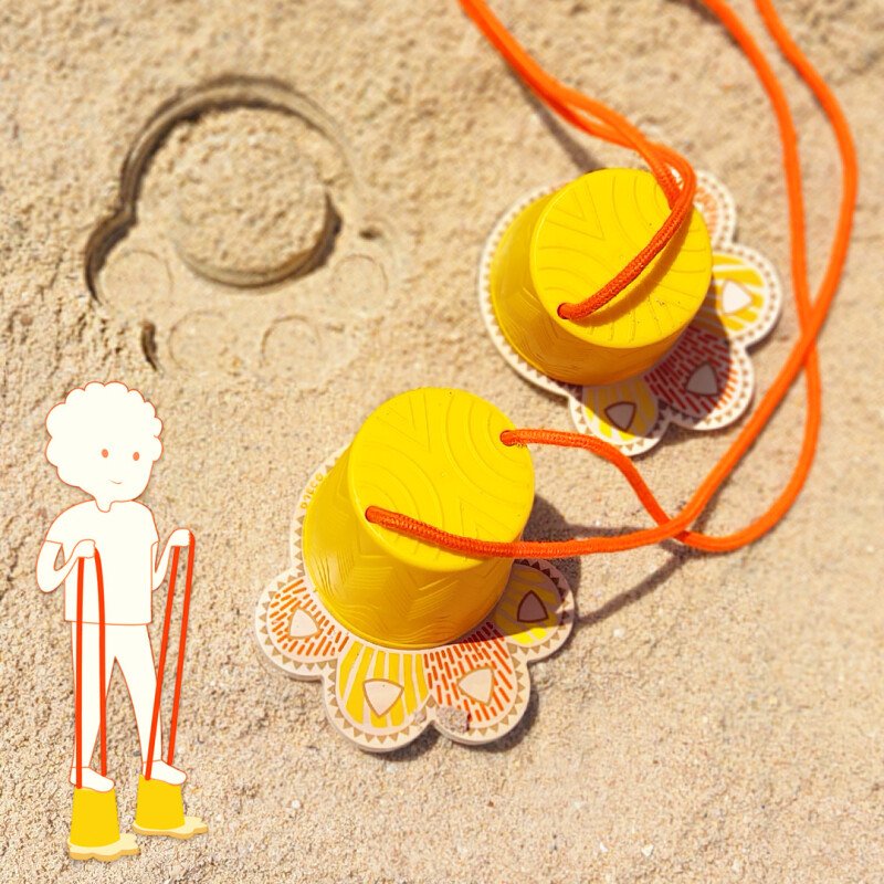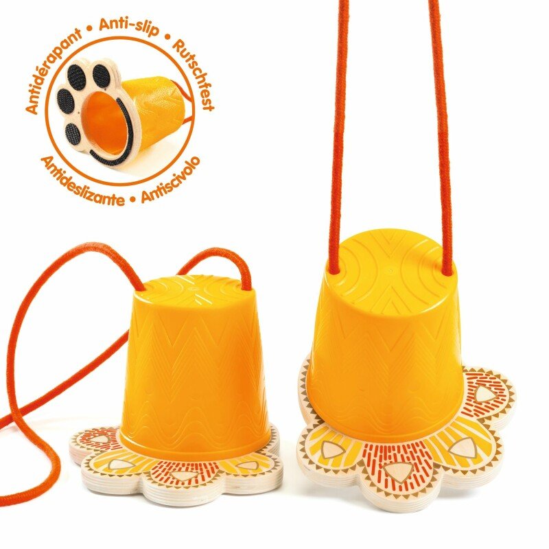 Pattoons es un juego de equilibrio. Los peques se suben a los 2 zancos e intentan mantener el equilibrio mientras avanzan.