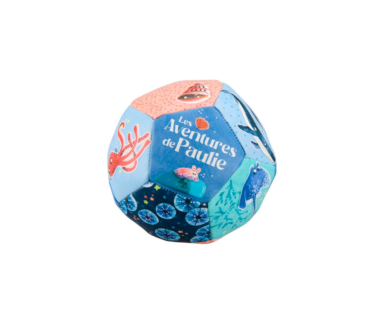 Para empezar a agarrar, manipular y tirar... Una suave y divertida pelota de Moulin Roty.
