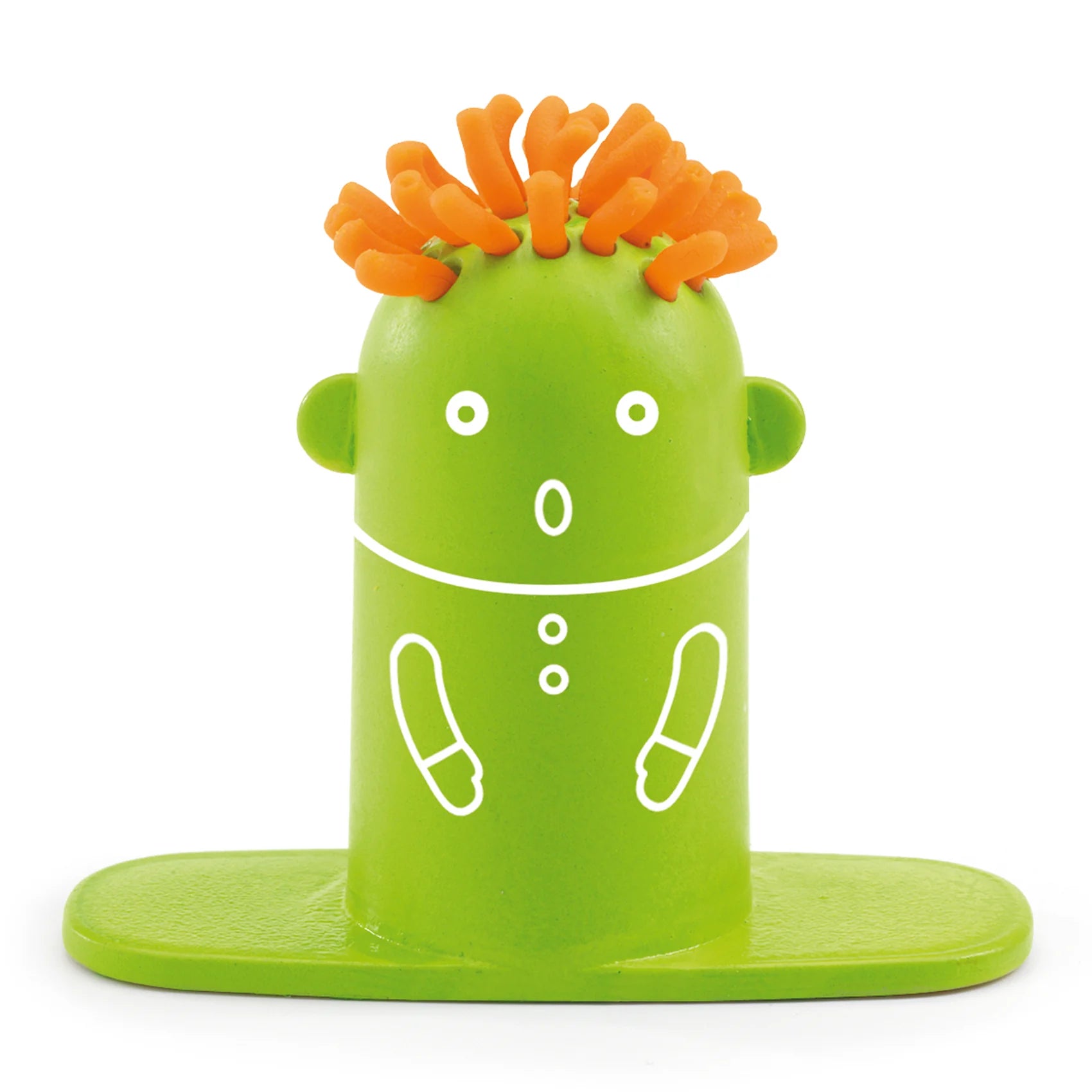 Un estuche divertido para hacer peinados de plastilina, que contiene utensilios como un par de tijeras y dos botes de plastilina amarilla y naranja.