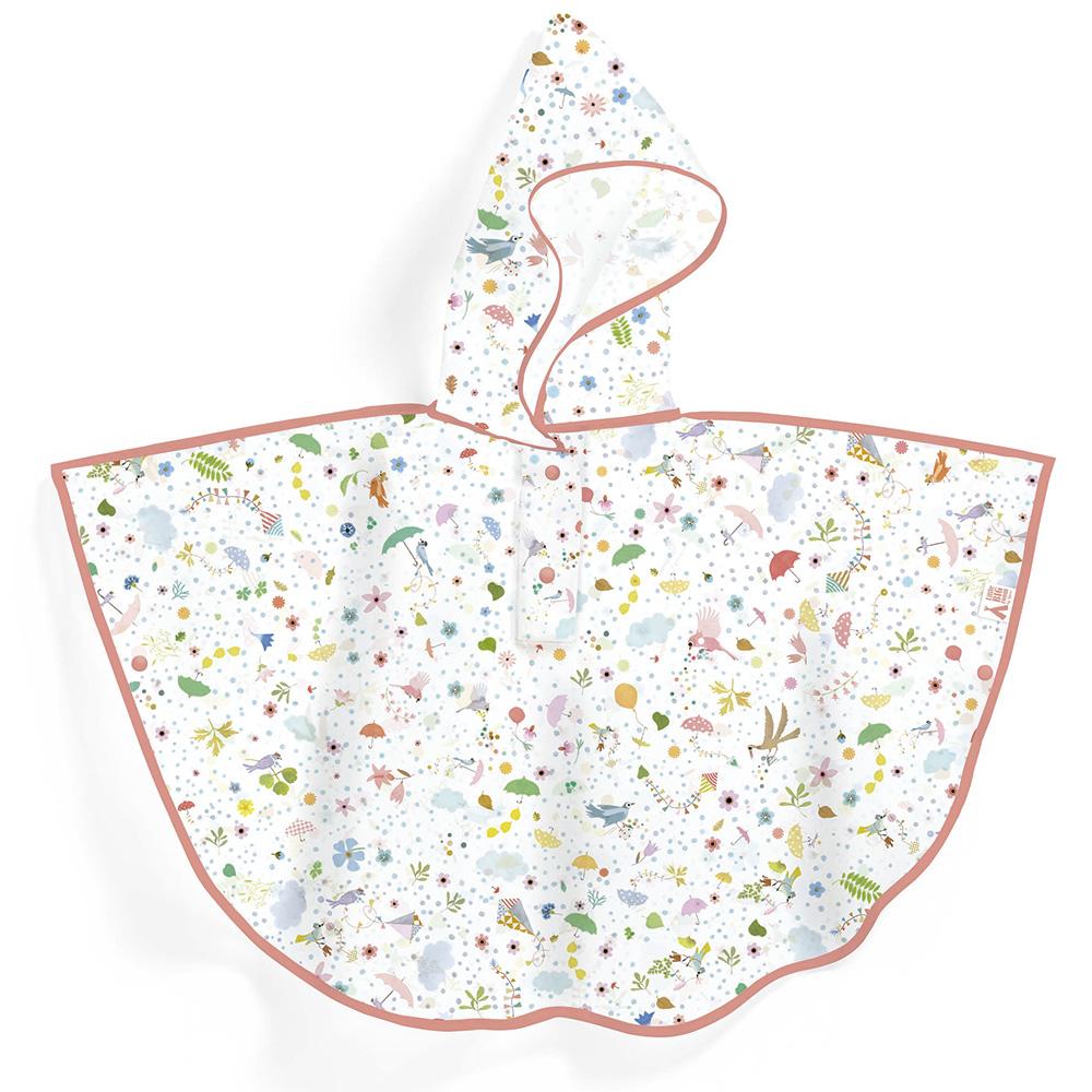 Un práctico poncho de lluvia con capucha con mucho estilo adornado con ilustraciones de preciosas.