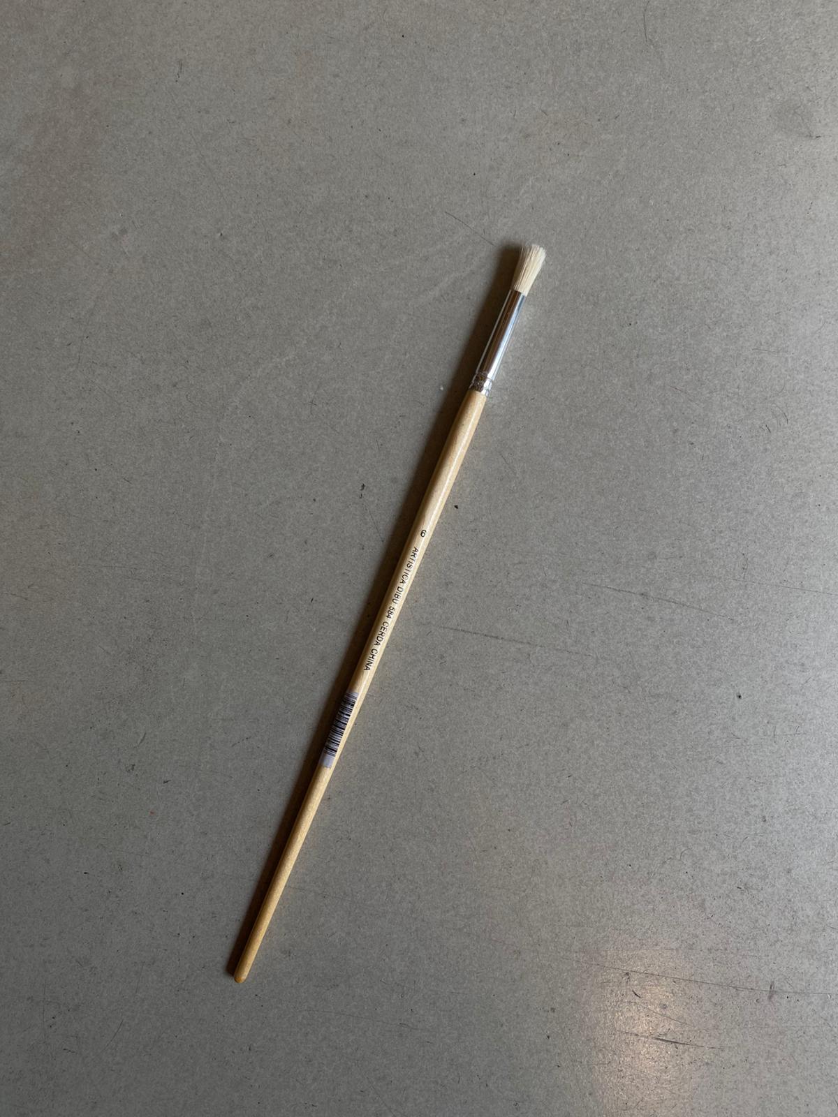Su punta redonda de cerda blanca permite trazos suaves y controlados, mientras que el mango largo de madera natural ofrece buen agarre y comodidad para manos pequeñas y grandes.