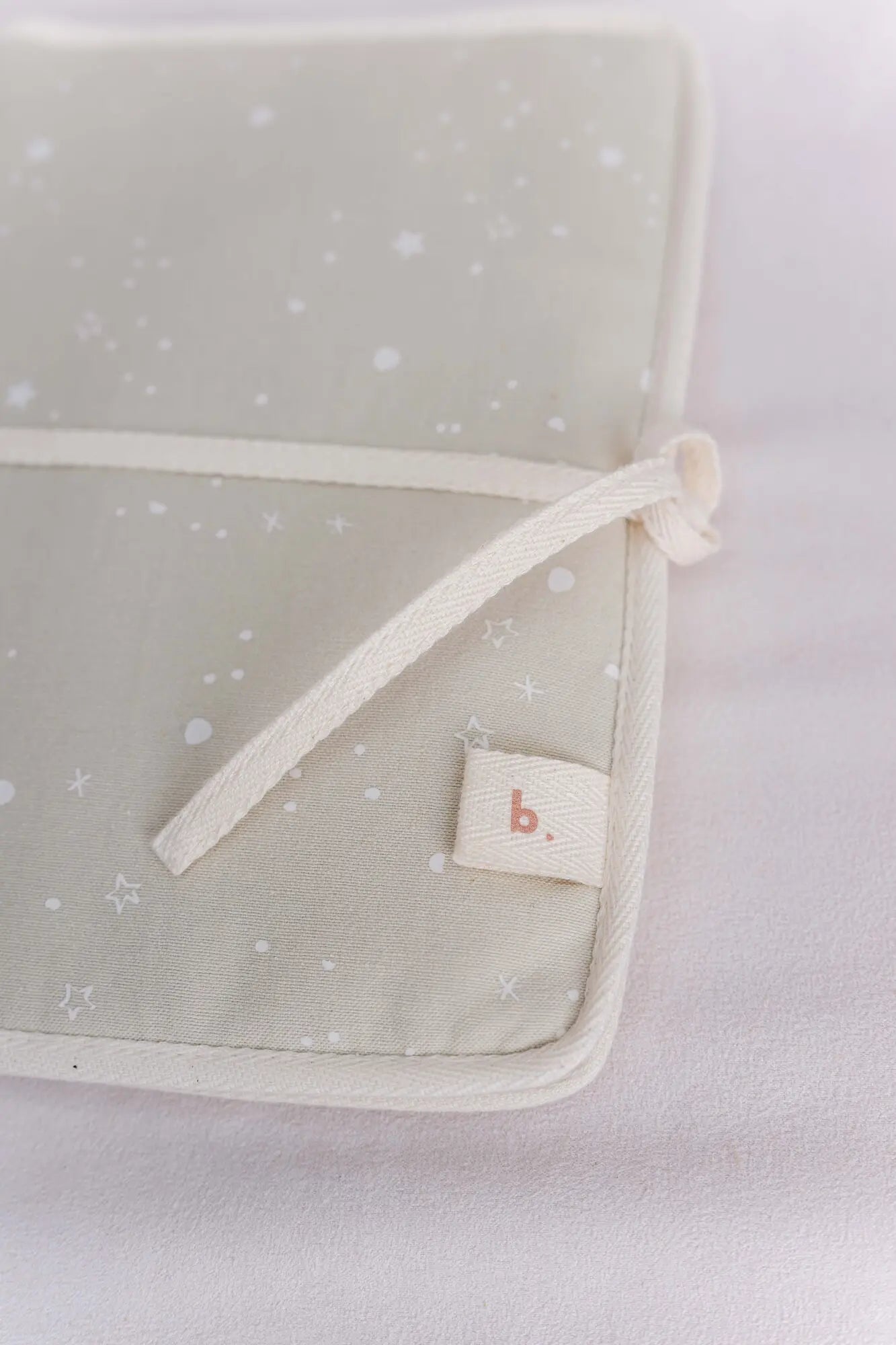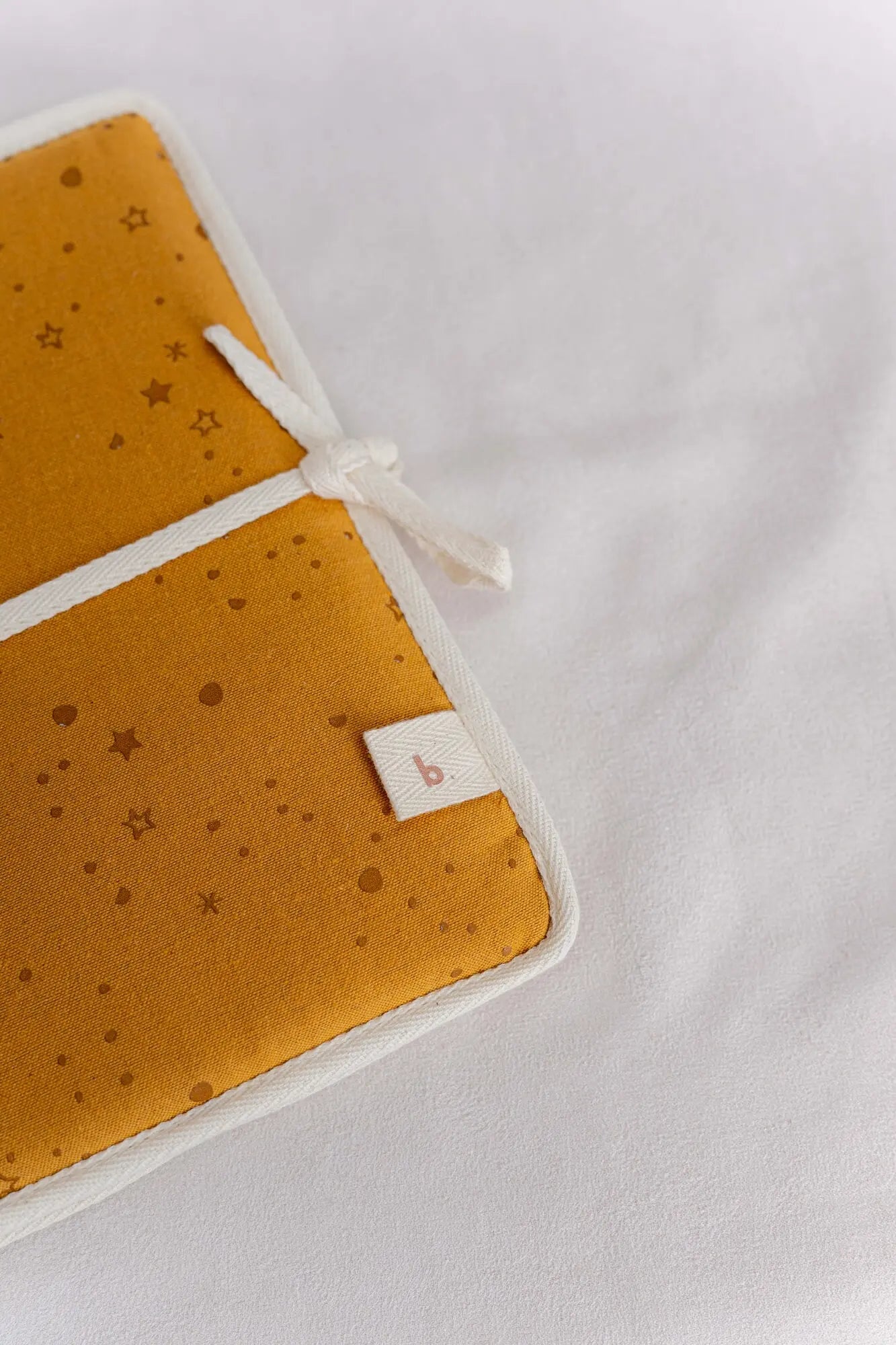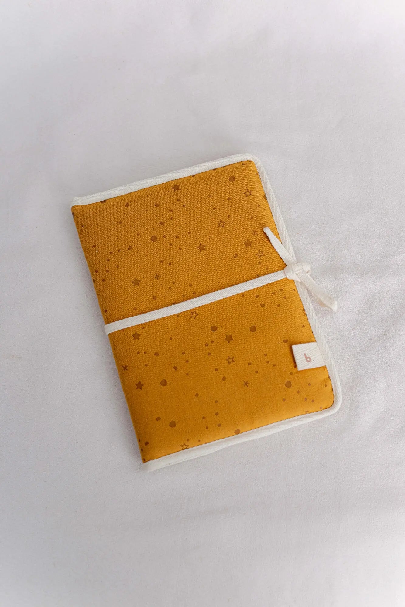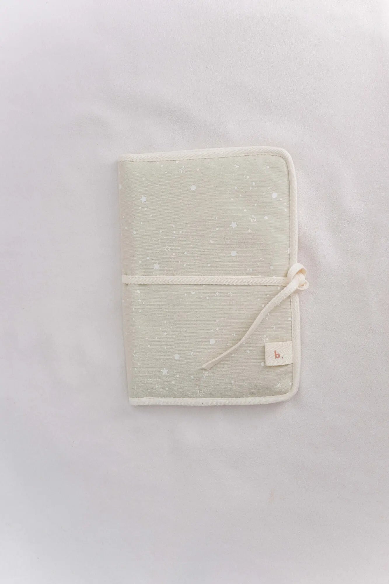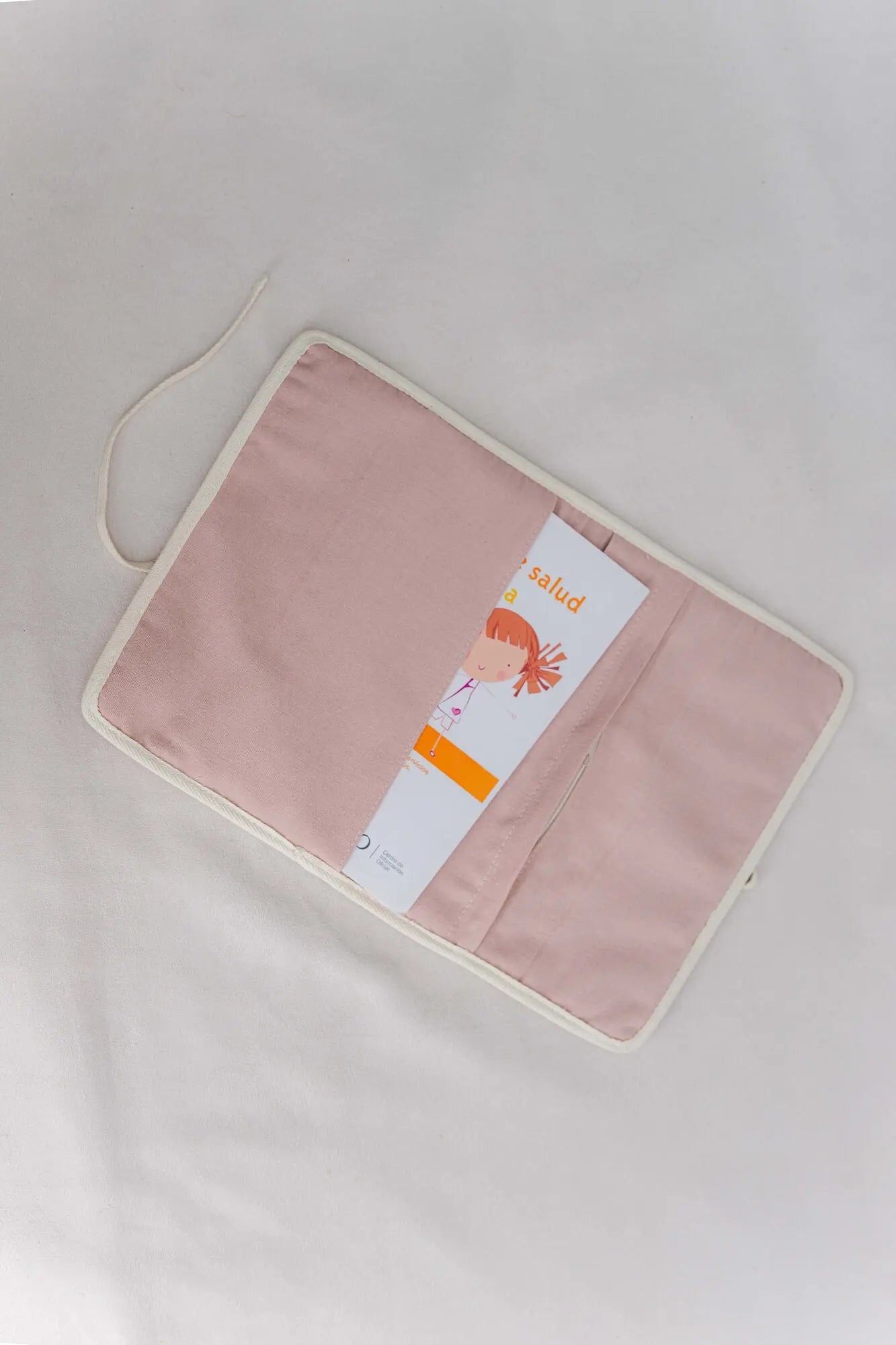Porta-documentos en tela de algodón con estampas de estrellas y corazones.