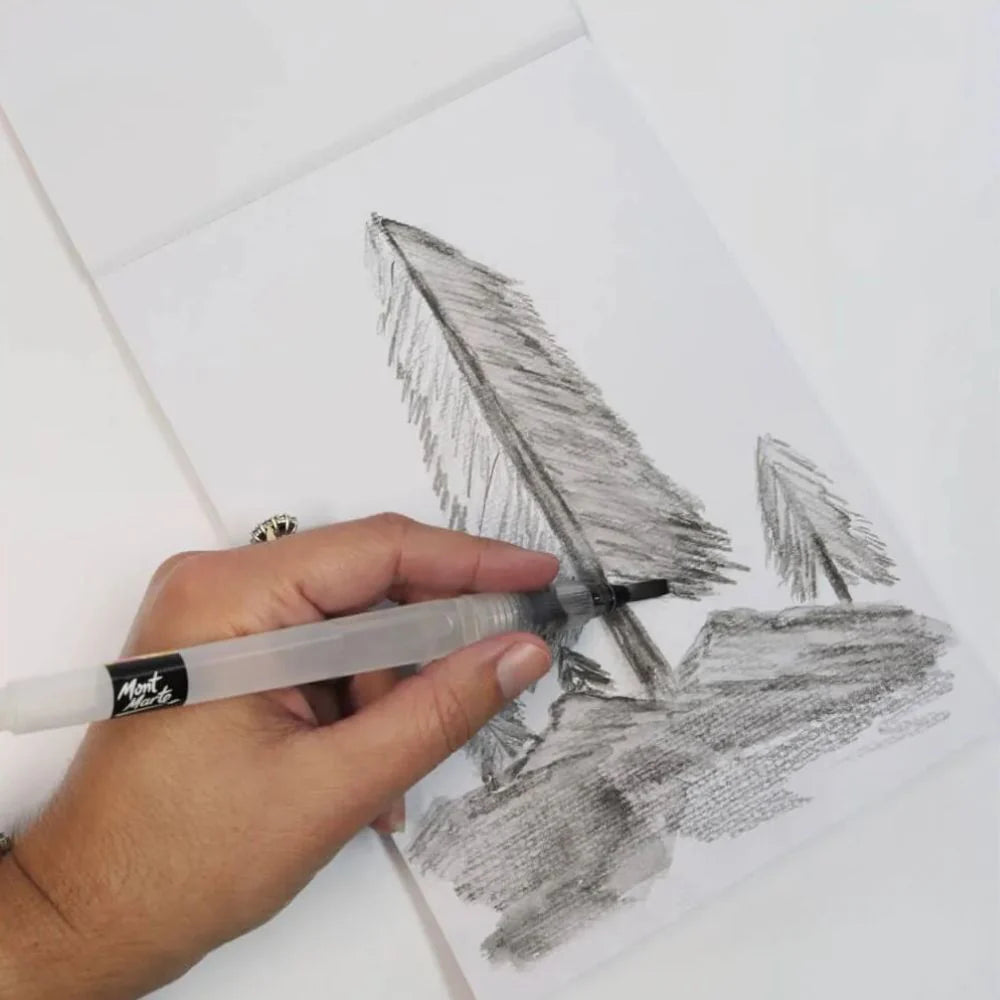 Incluye una paleta con 12 colores vibrantes, un pincel con depósito de agua (¡ideal para pintar sin vaso!), un lápiz de grafito y un libro con hojas gruesas especiales para acuarela.