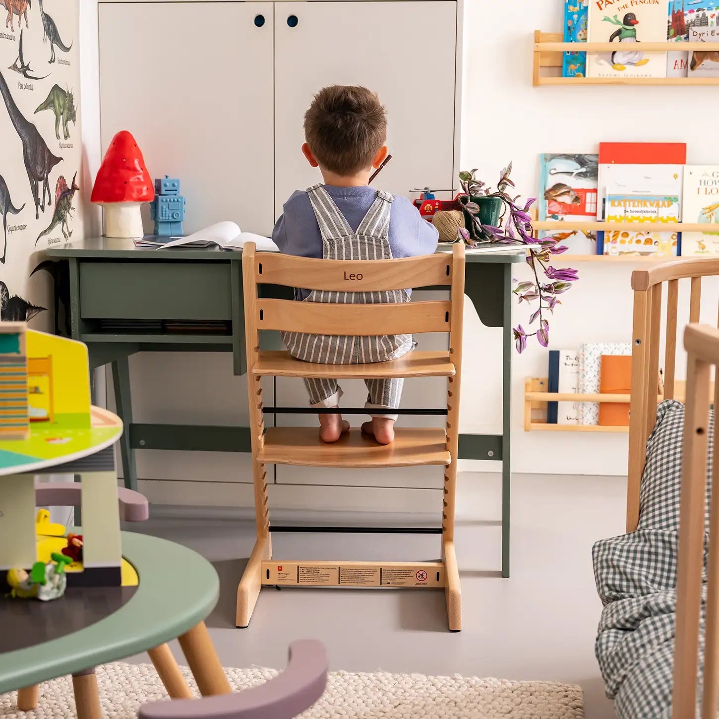 La silla Tripp Trapp® crece con tu hijo. Su diseño inteligente y ajustable proporciona libertad de movimiento, ya que permite regular la profundidad y la altura de la silla y el reposapiés. Esto significa que,cuando se ajusta correctamente, tu hijo estará sentado en una posición ergonómicamente correcta y cómoda para cualquier edad.