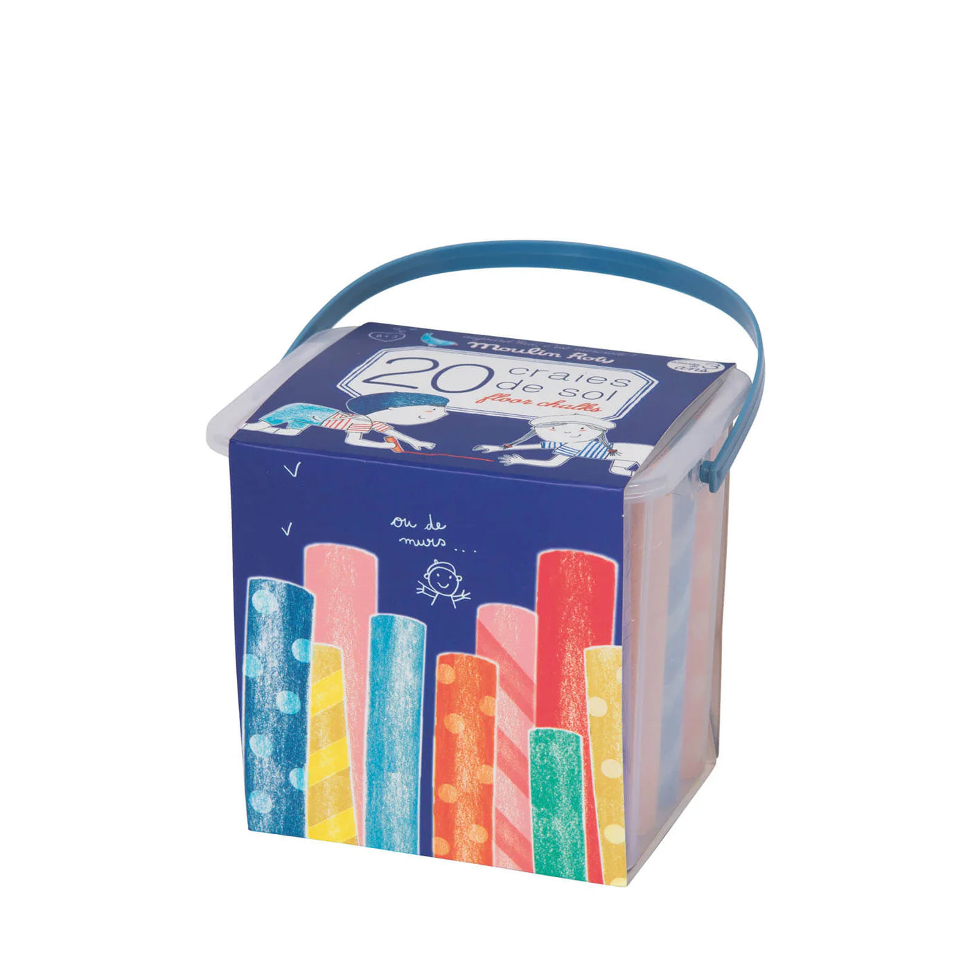 Para dibujar un mundo propio, 20 tizas de piso en 6 colores diferentes.