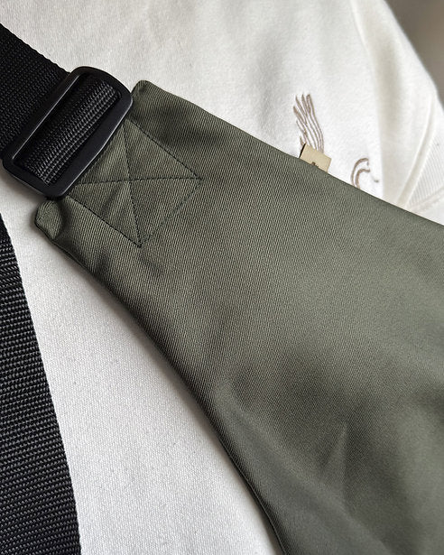 1_Colócate el portabebés al estilo bandolera y cruzando tu pecho, del lado que te quede más cómodo, con el broche hacia el frente.